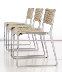 A los sillones de la serie Metropolitan, se unió esta silla de aspecto ligero que se presenta con dos estructuras: cuatro radios de aluminio o con estructura tubular de acero. El revestimiento puede ser de tela o piel. Medidas: 48 cm x 54 cm x 78 cm (anchura x profundidad x altura). Altura del asiento: 44 cm. www.bebitalia.com