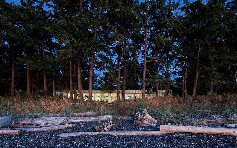 La casa Northbeach se emplaza en una zona de playa frente al Estrecho de Georgia, donde disfruta de un paraje idílico. El terreno tiene una gran cantidad de abetos, un bosque de hayas, un prado con hierba y una buena exposición a los rayos del sol. Un doble frente mar-montaña del que se disfruta a través de amplias paredes acristaladas.