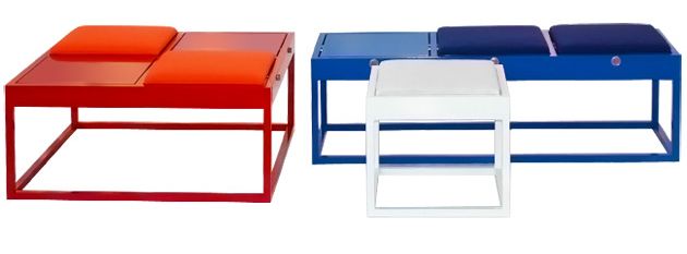 Aerealist -en español «trapecista»- es el adecuado nombre que la empresa de Cleveland (Ohio) Objeti ha puesto a este mueble que puede utilizarse como mesa auxiliar y asiento. Basta un giro de palanca para descubrir el cojín tapizado que se esconde bajo su superficie.