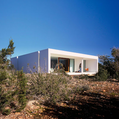 En cuanto a los materiales, el volumen queda definido por una envolvente de bloque de termoarcilla revestida y hormigón armado, la única parte de construcción húmeda de la obra. El resto de cerramientos interiores y exteriores se han ejecutado en seco, y cristal mediante madera de iroko.
