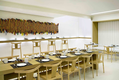 El mobiliario se complementa con detalles como las fotografías del artista Carles Roig, que se han colocado sobre los cabezales de las camas y que reproducen originales imágenes de peces sobre un fondo de madera. O en el comedor, que también se utiliza como sala multifuncional para acoger pequeñas reuniones o encuentros profesionales, llama la atención la insólita escultura del artista Xavier Escribá que preside la pared frontal y que imprime vitalidad y color a la sala.
