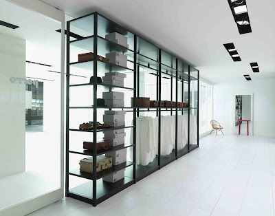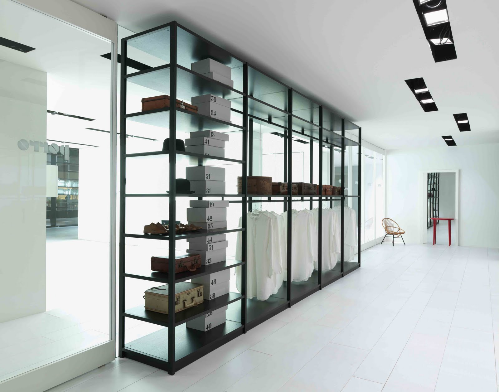 La reinterpretación de un mueble clásico al que se le han aplicado las nuevas tecnologías da como resultado esta vitrina de cristal con perfilería de acero pensada para almacenar un gran número de libros. Delicada al tacto y a la mirada, la transparencia del frontal, los laterales y los estantes se contrapone a la chapa en roble “carbón” de la trasera.