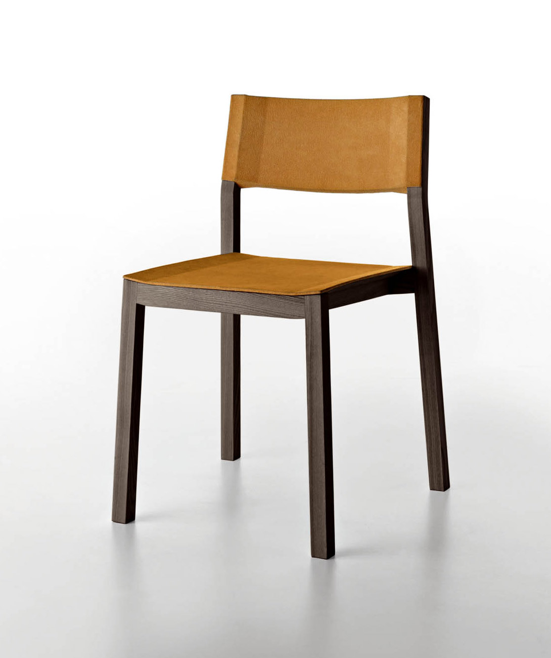 El primer proyecto de Armani para Molteni es esta silla apilable, de diseño limpio y atemporal. El asiento y el respaldo, que descansan sobre una sólida estructura, están realizados en un material completamente ecológico y reciclable.
