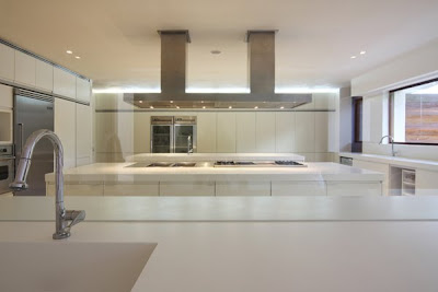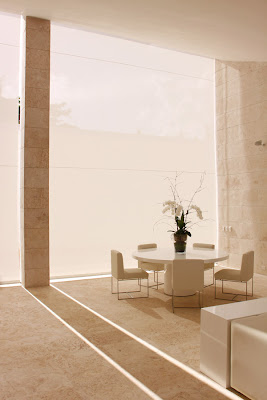 La piedra de coralina empleada en el exterior se ha introducido en el interior para ofrecer continuidad visual, además de ser este un material muy apropiado para el caluroso clima presente todo el año.