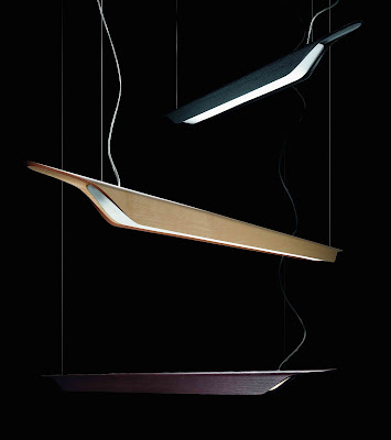 Una lámpara de suspensión tanto para espacios domésticos como contract, inspirada en un cuenco de madera con forma de canoa de la tradición doméstica sueca. Está realizada con madera multicapa, curvada en caliente, y trabajada en los bordes con un fresado especial que crea un perfil inclinado, enfatizado por las vetas de la madera.
