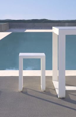 Esta serie de mobiliario para exterior incluye una amplia variedad de piezas que están fabricadas con perfilería de aluminio termolacada y polietileno, y están disponibles en color blanco y bronce. La oferta de Flat incluye: tumbona, mesa-tumbona, silla, sillón bajo, sofás modulares, mesas altas, mesas bajas, puff de sillón bajo, puff modular, bancos y taburete alto y bajo.