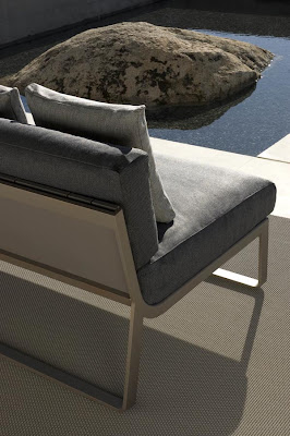 Esta serie de mobiliario para exterior incluye una amplia variedad de piezas que están fabricadas con perfilería de aluminio termolacada y polietileno, y están disponibles en color blanco y bronce. La oferta de Flat incluye: tumbona, mesa-tumbona, silla, sillón bajo, sofás modulares, mesas altas, mesas bajas, puff de sillón bajo, puff modular, bancos y taburete alto y bajo.