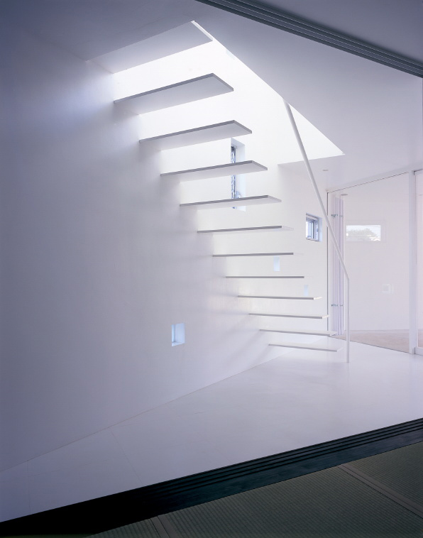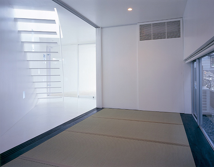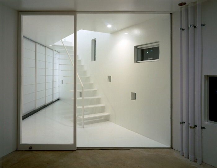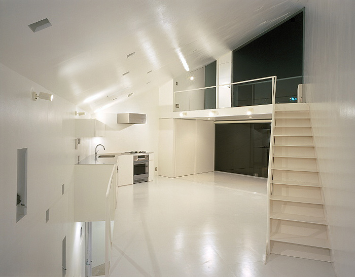 La edificación, cuyo interior es íntegramente blanco, se desarrolla en tres niveles de diferentes superficies: 30,22 m2 (primera planta); 47,73 m2 (segunda planta) y 13,58 m2 (tercera planta). Todas las estancias se han concebido como espacios abiertos, excepto las habitaciones que pueden independizarse a través de puertas correderas.