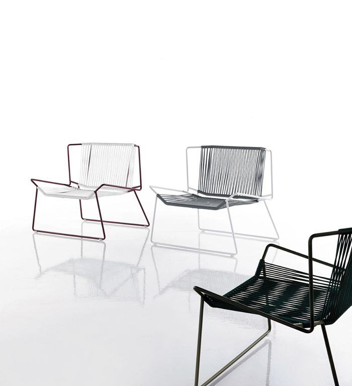 Out Line se caracteriza por el empleo de nuevos materiales y por la posibilidad de utilizarse tanto en el interior como en el exterior. Su estética ligera y contemporánea facilita su integración en ambientes diversos. La colección está formada por sillón, silla, taburete y banqueta.