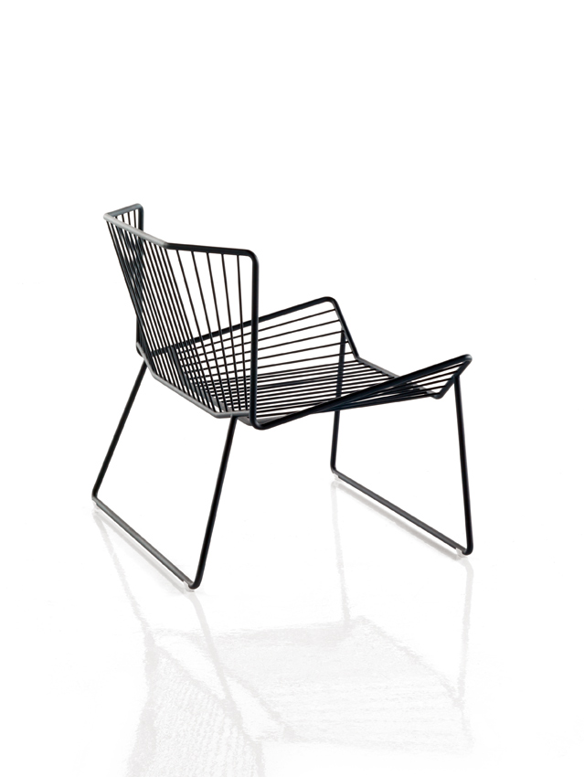 Out Line se caracteriza por el empleo de nuevos materiales y por la posibilidad de utilizarse tanto en el interior como en el exterior. Su estética ligera y contemporánea facilita su integración en ambientes diversos. La colección está formada por sillón, silla, taburete y banqueta.