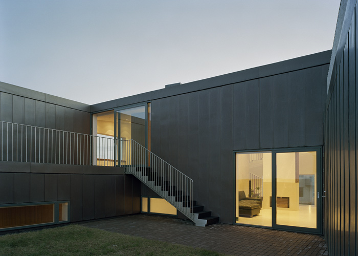 Los muros tienen aberturas mínimas en las fachadas que miran a la ciudad, mientras que en la parte que da al jardín privado, el volumen está subdividido en una serie de terrazas a las que se accede mediante grandes puertas correderas de cristal.