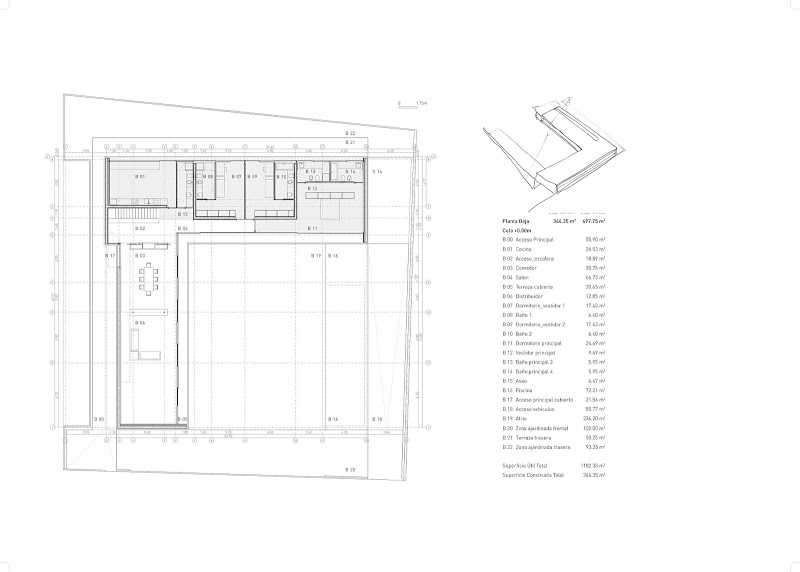 Para conseguirlo se han utilizado dos estrategias. La principal ha consistido en liberar la mayor superficie posible en el centro del solar, permitiendo disfrutar de un espacio privado con una altura y volumen incalculables. Además, se ha potenciado el perímetro de contacto de la vivienda con el exterior, entendiendo parcela y vivienda como un todo continuo.