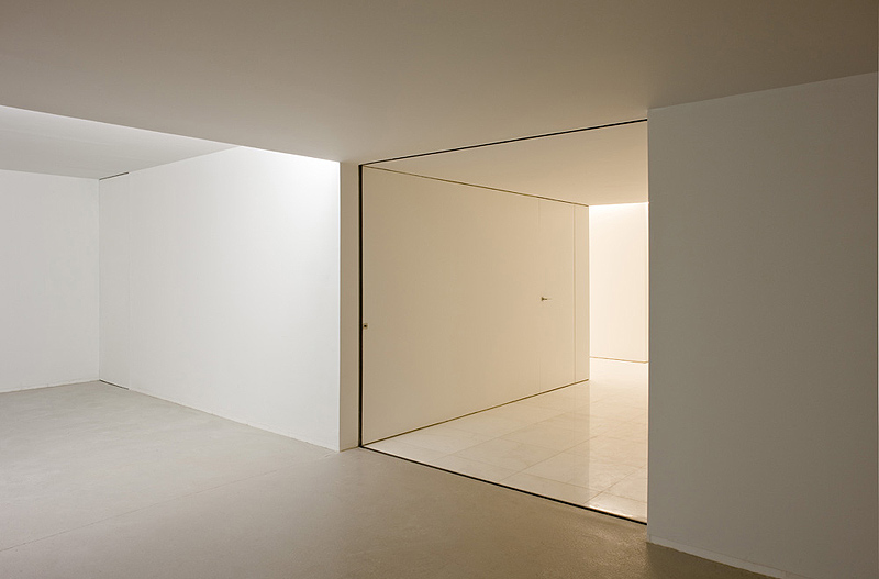 La zona Sur, en la que se disponen las estancias de día, desmaterializa su presencia gracias a la luz cenital. En la zona Oeste, las habitaciones recaen a una porción de parcela con una escala más doméstica, mientras la habitación principal se asoma a la luz de levante reflejada sobre el agua.