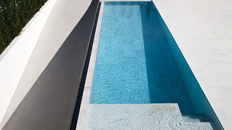 Para conseguirlo se han utilizado dos estrategias. La principal ha consistido en liberar la mayor superficie posible en el centro del solar, permitiendo disfrutar de un espacio privado con una altura y volumen incalculables. Además, se ha potenciado el perímetro de contacto de la vivienda con el exterior, entendiendo parcela y vivienda como un todo continuo.