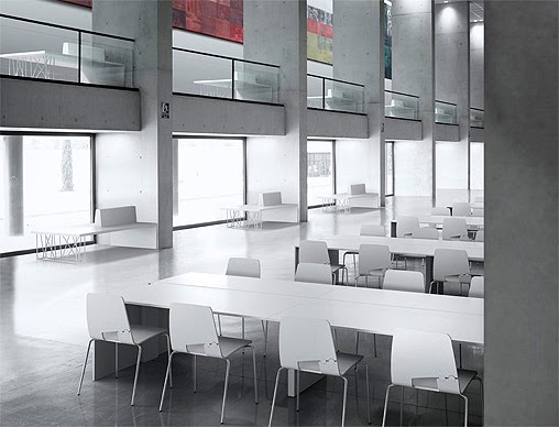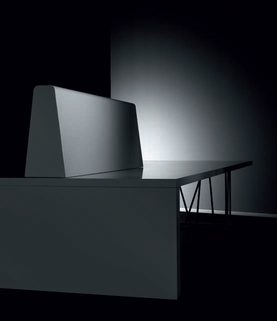 Recepción Studio:Studio es un mostrador en el que destaca, además de su diseño austero pero funcional, su modularidad. Esta última característica permite la creación de configuraciones personalizadas. Los costados están realizados en chapa blanca y estructura tubular de 60 x 30 mm, mientras que las tapas y el panel frontal pueden ser de melamina, HPL, MDF o madera. Los paneles, además, pueden grabarse como elemento de señalización. Para asegurar una correcta atención a los minusválidos, la mesa puede sobresalir de la estructura.