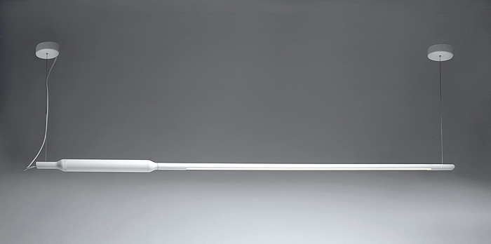 Un elemento de iluminación cuya magia es su simplicidad. El objetivo del diseño era combinar en un único objeto un tubo fluorescente estándar con el módulo de lastre. El resultado es una lámpara con aspecto monolítico y minimalista, que puede utilizarse tanto en su versión de pie como suspendida. La dirección del haz de luz puede regularse manualmente. Ambas versiones hacen 179 cm de largo total. Slim ganó el Red Dot 2009 Product Design Award.