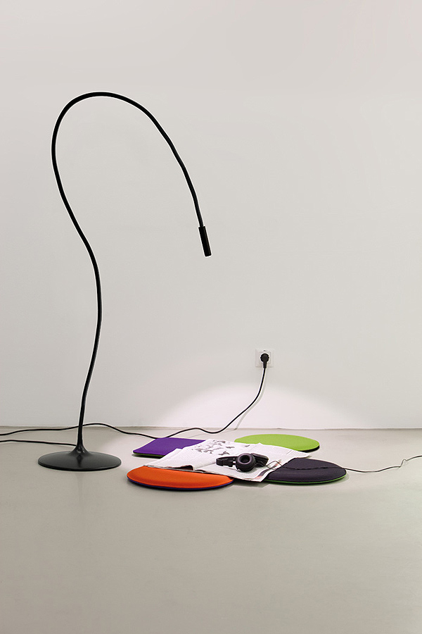 Una lámpara de lectura, completamente flexible, que intenta reflejar la atracción hipnótica que siente una cobra cuando oye la música sensual de una flauta. Realizada en aluminio, es decididamente minimalista en el diseño y fácil en el uso. Está disponible en dos colores, blanco y negro, y mide completamente extendida: 220 cm.