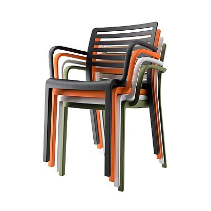 Una reinterpretación de la silla de lamas metálicas para exteriores, de la que han podido disfrutar varias generaciones. Producida por la empresa Dd, en este asiento se combinan en un sutil equilibrio conceptos que atañen tanto al diseño como a su fabricación: ligereza, transparencia, ergonomía, versiones monocromáticas o combinadas y plástico técnico de alta calidad. Además, puede apilarse, formar filas, dispone de una tablilla abatible para escritura,… lo que le proporciona una gran versatilidad en el uso.