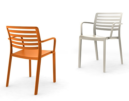 Una reinterpretación de la silla de lamas metálicas para exteriores, de la que han podido disfrutar varias generaciones. Producida por la empresa Dd, en este asiento se combinan en un sutil equilibrio conceptos que atañen tanto al diseño como a su fabricación: ligereza, transparencia, ergonomía, versiones monocromáticas o combinadas y plástico técnico de alta calidad. Además, puede apilarse, formar filas, dispone de una tablilla abatible para escritura,… lo que le proporciona una gran versatilidad en el uso.