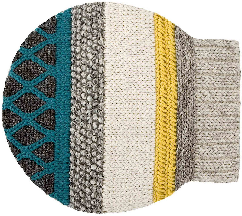 Dos divertidas colecciones de alfombras con cierto aire infantil, fabricadas con lana virgen y reverso de algodón. El transportador 360º se presenta con dos diseños y dos diámetros diferentes: 120 y 225 cm. El transportador 180º tiene unas medidas totales de 120 x 70 cm y 225 x 125 cm. Los colores disponibles son el negro y el blanco.