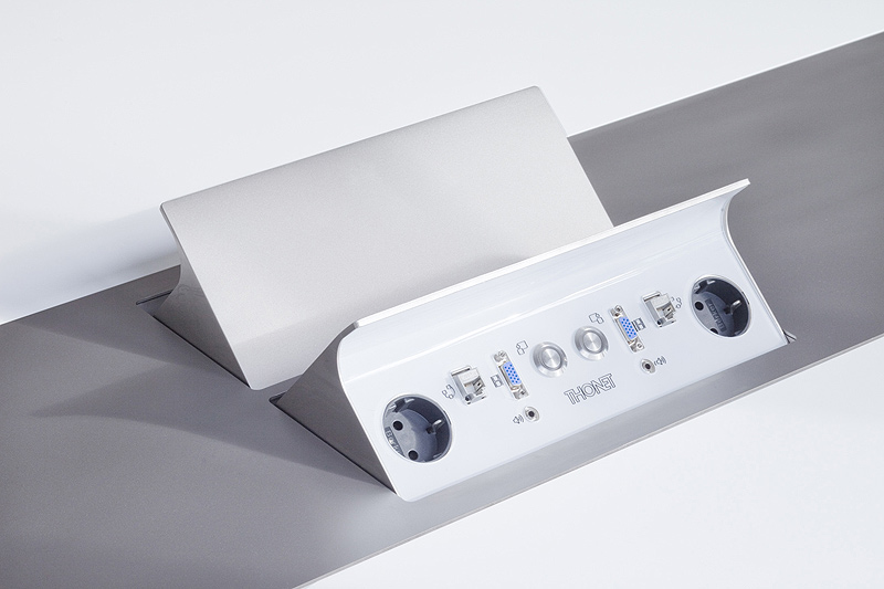 La S 8000 ofrece una amplia variedad de soluciones prácticas: Así, la placa que cubre la superficie funcional puede suministrarse en acero inoxidable o lacada; el tablero puede ser, entre otros, en cerezo negro, haya, arce, roble, fresno, nogal y lacado blanco o negro; y, puede suministrarse en cinco longitudes diferentes: 270, 360, 450, 540 y 630 cm con un generoso ancho de 150 cm. Unas dimensiones que permiten acoger entre 8 y 22 personas.