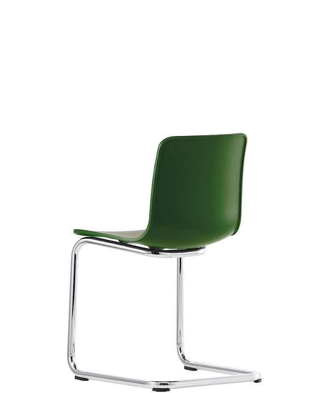 Una silla concebida para ser lo más universal posible y satisfacer múltiples necesidades tanto en apartamentos privados, como en instituciones públicas, tiendas, restaurantes o estudios. Además, al ser de plástico puede utilizarse al aire libre. La carcasa de una sola pieza, disponible en varios colores, se combina con una base que puede ser en tubo de acero o de madera de roble. El programa, que está siendo ampliado paulatinamente, también incluye una variante con base de oscilación libre y un taburete.