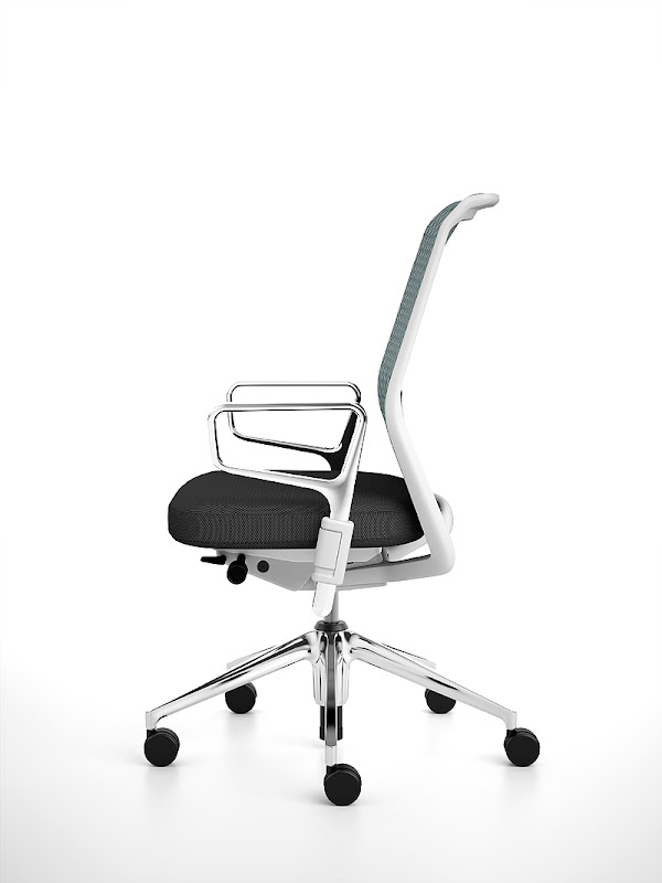 El respaldo se presenta en tres versiones: con una red tridimensional que representa la transparencia técnica, un respaldo acolchado con un cojín de espuma que simboliza la forma neutral clásica y, finalmente, una novedosa estructura de sándwich con dos alturas de respaldo que transmite una expresión artesanal contemporánea. A ellos se suman los elementos funcionales, como soportes lumbares, reposabrazos, reposacabezas o perchas, que permiten a la silla adaptarse aún más a las necesidades personales.