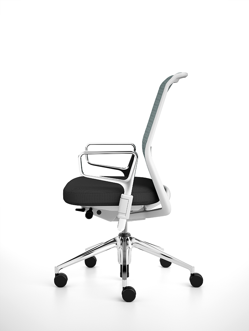 El respaldo se presenta en tres versiones: con una red tridimensional que representa la transparencia técnica, un respaldo acolchado con un cojín de espuma que simboliza la forma neutral clásica y, finalmente, una novedosa estructura de sándwich con dos alturas de respaldo que transmite una expresión artesanal contemporánea. A ellos se suman los elementos funcionales, como soportes lumbares, reposabrazos, reposacabezas o perchas, que permiten a la silla adaptarse aún más a las necesidades personales.