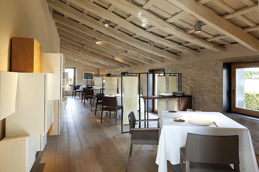 Can Jubany es una de estas antiguas masías de arquitectura tradicional, situada cerca de Calldetenes, que abría sus puertas como restaurante en el otoño de 1995. Coincidiendo con este décimo quinto aniversario, se decidió rehabilitar y dar un nuevo aire al local. Ha sido el equipo de Sandra Tarruella interioristas el encargado de llevar a cabo la reforma del establecimiento.