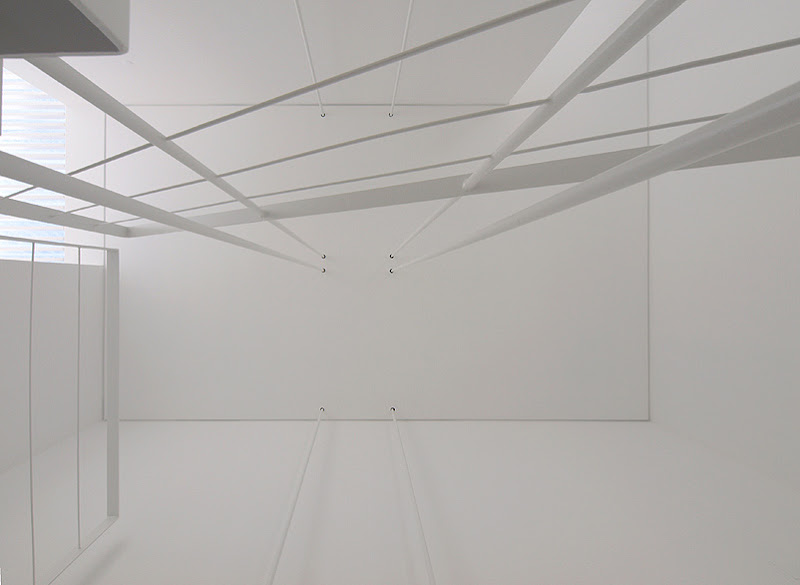 Esta uniformidad nívea se respira en casi todos los lugares de la residencia: las zonas de paso, como el pasillo principal y la escalera, que son de metal pintado en color blanco y se separan sutilmente de las paredes, dejando que la luz pueda pasar entre medio. También las paredes externas e internas, acabadas en yeso, están acabadas en el mismo color.