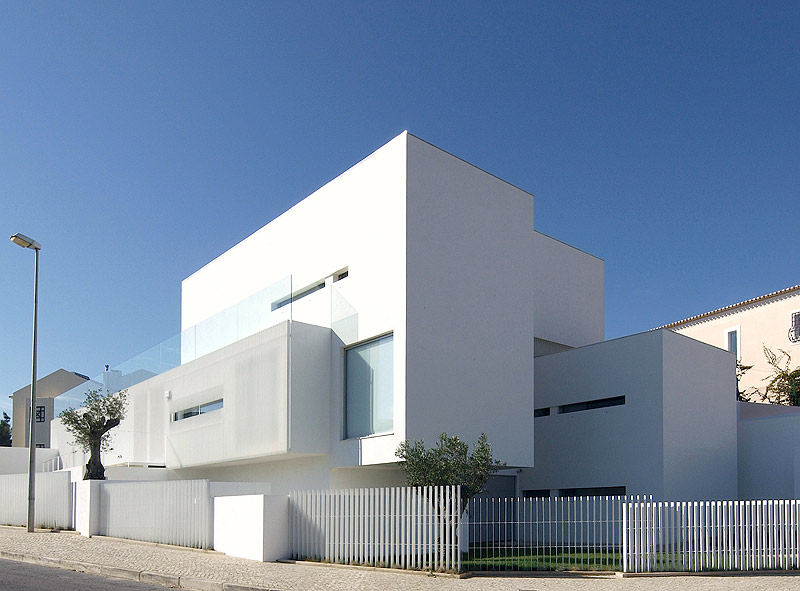 Una casa minimalista blanca, muy blanca, situada en Paço de Arcos, un barrio de Lisboa frente al mar. Su autor, el arquitecto portugués Jorge Mealha, propone una vivienda integrada por varios volúmenes que dan respuesta al amplio programa funcional solicitado por el cliente. La forma resultante propone un diálogo entre los diferentes llenos y vacíos, utilizando la luz para dibujar sobre las superficies, lo que da como resultado una lectura cambiante del espacio y los cuerpos arquitectónicos a lo largo del día.