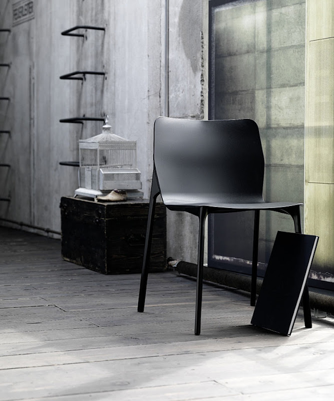 También la coquilla recambiable del asiento y respaldo se caracteriza por su diseño industrial. Realizada en una sola pieza, va tensada sobre el marco a modo de membrana y está hecha de polipropileno granulado en el mismo color que el armazón (blanco, negro o gris). Además, es de fácil mantenimiento y resistente a las cargas mecánicas.