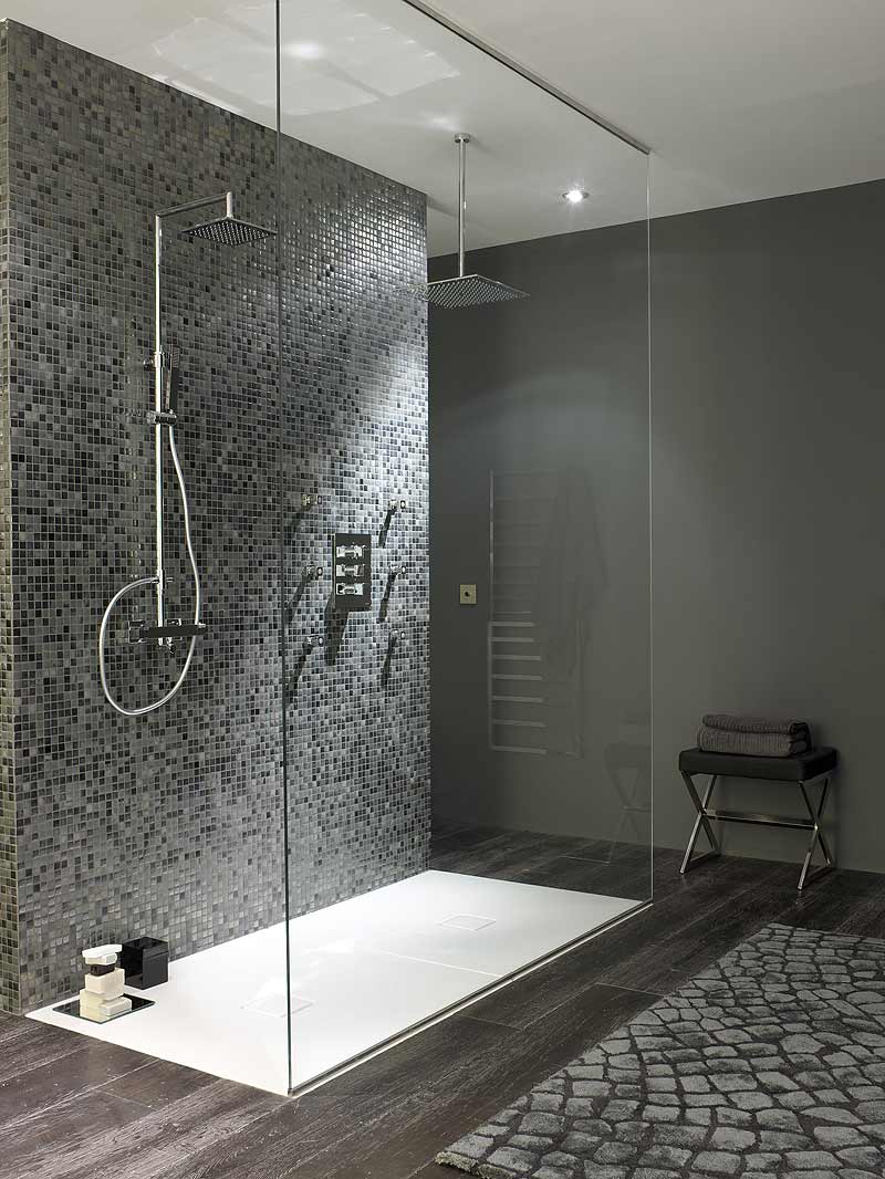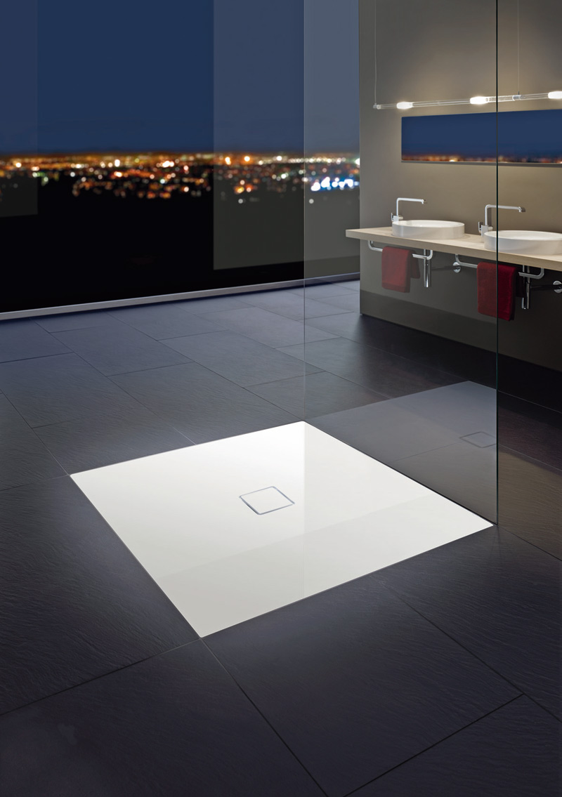 Conoflat es un nuevo plato de ducha de la empresa Kaldewei que destaca por ser totalmente plano y estar fabricado en acero esmaltado. Con este diseño se consigue un mismo nivel para todo el pavimento del baño, al mismo tiempo que se facilita la entrada y salida de la ducha al eliminar el tradicional escalón. Para acrecentar la seguridad y evitar posibles resbalones está recubierto con un esmalte antideslizante. Incluso el desagüe central está esmaltado en el mismo acabado y se integra completamente al estar fabricado en el mismo color. A nivel práctico, Conoflat puede obtenerse con efecto autolimpiante de tal forma que se facilita la eliminación de las partículas de cal del agua y la suciedad.