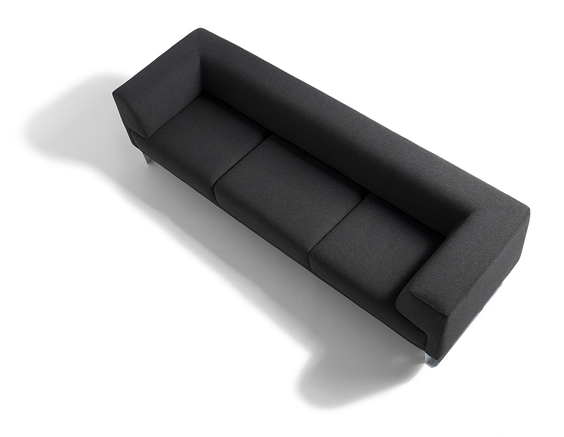 Esta pieza minimalista está disponible en tres medidas: dos plazas (200 x 95 x 68 h cm), dos plazas y media (235 x 95 x 68 h cm) y tres plazas (270 x 95 x 68 h cm). Para la tapicería puede elegirse entre telas de la firma Kvadrat.