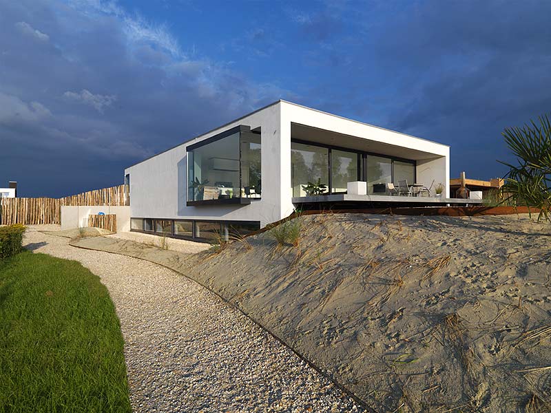 La afición de los clientes por la playa y el mar dio la idea a los arquitectos para diseñar un jardín con dunas, arena y vallas de madera, lo que ha conseguido la integración con el entorno y además les hizo ganar el premio holandés “Jardín del año 2009”.