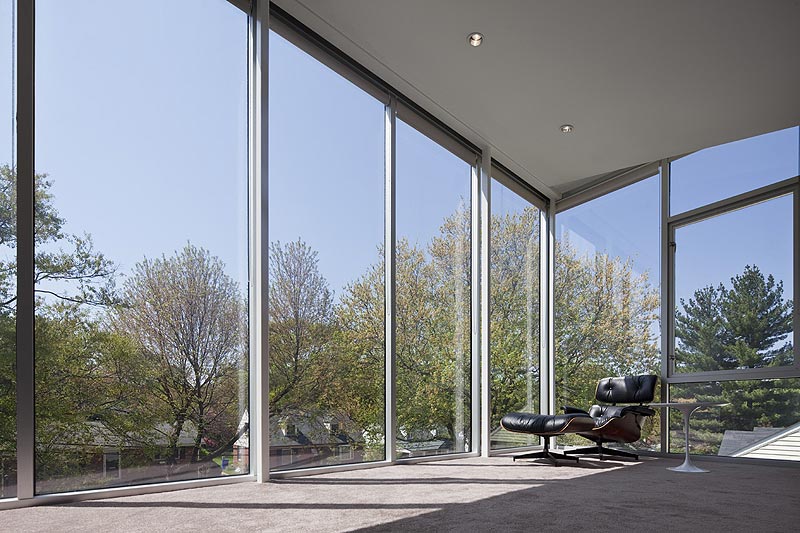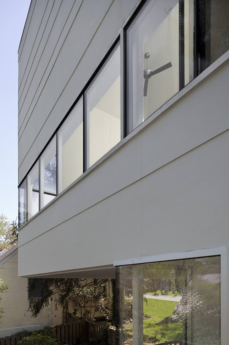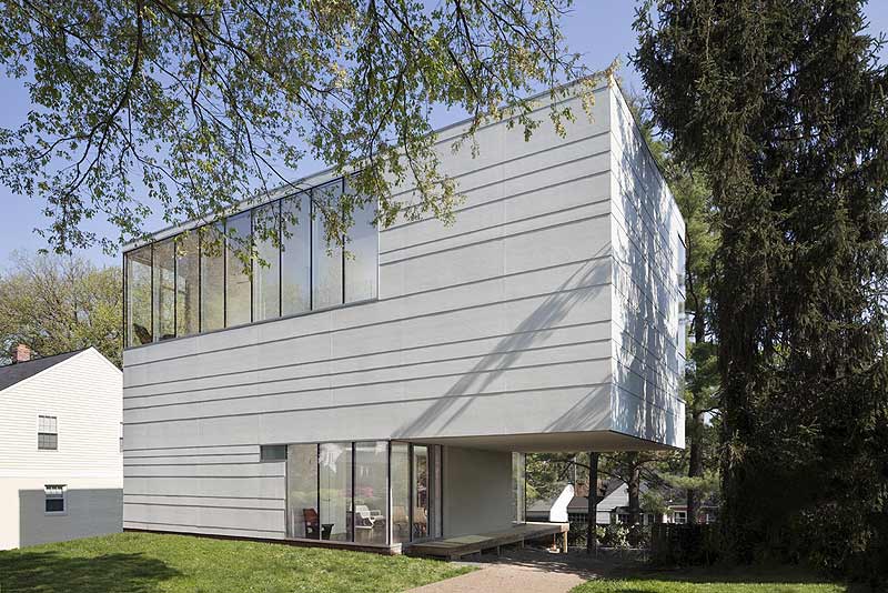 El estudio David Jameson Architects llevó a cabo la rehabilitación de esta vivienda de tres plantas para una joven pareja. Situada a unos ocho kilómetros al norte de Washington DC, su diseño moderno y minimalista contrasta con el de las casas vecinas, un grupo de edificaciones de la época de posguerra con una estética mucho más clásica.