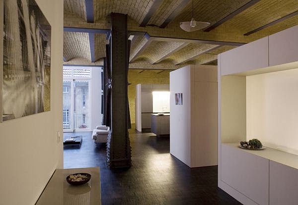 Debido a este enfoque minimalista dado a la reconstrucción, el nuevo diseño interior a cargo de Wienands se centró en elegir cuidadosamente tanto los materiales como los detalles del mobiliario. Por ejemplo: las superficies de los muebles son de linóleo blanco y negro, lo que ha permitido combinar varios módulos individuales a la carta. Para tener un efecto visual lo más limpio posible, todas las superficies delanteras son cuadradas y carecen de asas. Sus mecanismos de apertura y cierre siempre se realizan mediante control electrónico o magnético.