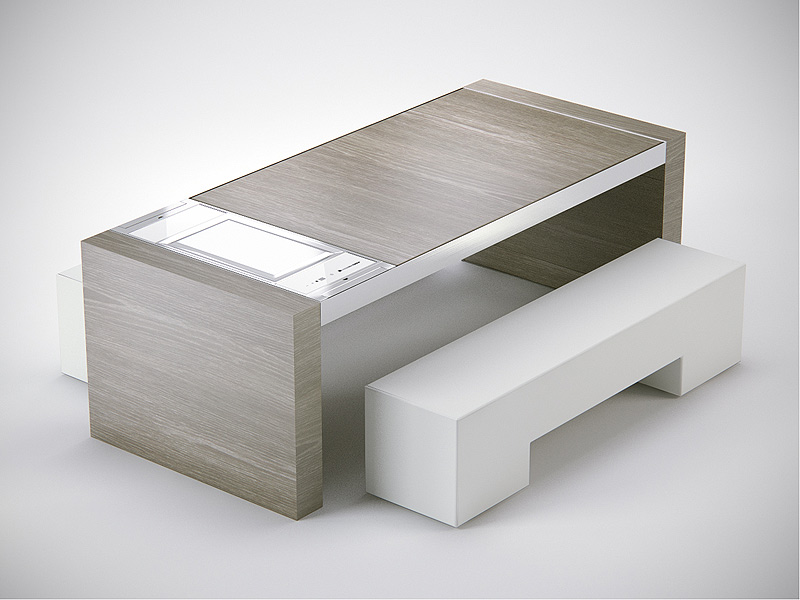 livecookintable ® Solitaer es un moderno concepto de cocina cuya filosofía hay que buscarla en las costumbres japonesas, donde es señal de hospitalidad y respeto que el anfitrión cocine delante de sus huéspedes. Atrás han quedado los días de bullicio y ajetreo en la cocina mientras los invitados esperaban la comida. Esta mesa-cocina encaja perfectamente con esta tendencia que parece estar poniéndose cada vez de moda al mismo tiempo que ofrece unas posibilidades técnicas acordes con la época actual.
