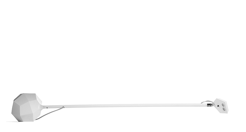 Una lámpara que ofrece 24 posiciones diferentes gracias a su base poliédrica de 24 caras, a lo que se suma que su cabeza también puede rotar en todas direcciones. Basta un sencillo giro para disfrutar de una “nueva luminaria”. Estéticamente, resulta agradable y hasta un punto infantil el contraste entre la sólida base de hormigón y el esbelto cuerpo. El modelo de pie mide 110 cm y la base 22 cm, mientras que el de sobremesa mide 60 cm de alto y 10 cm de base.