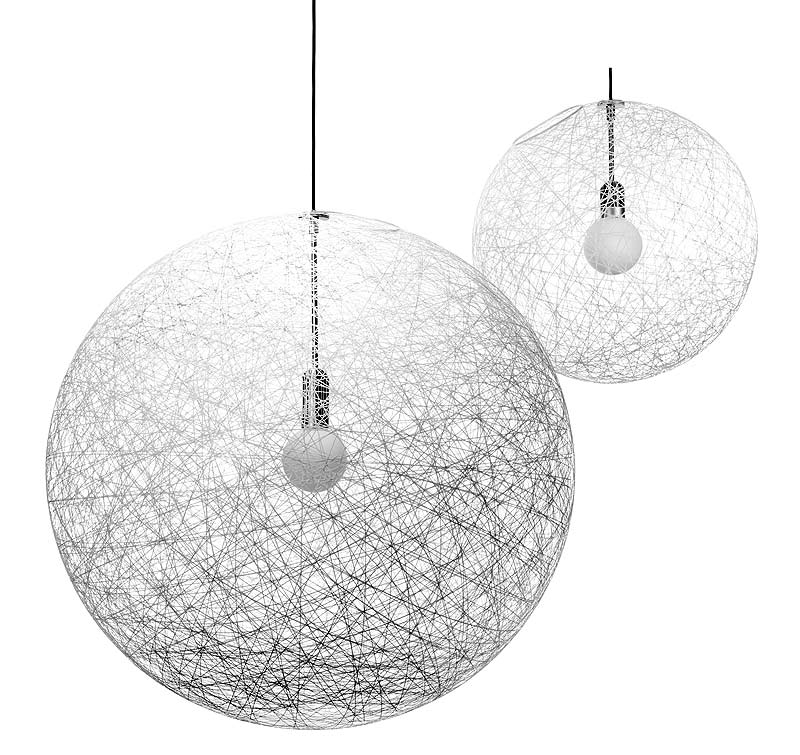 La exitosa lámpara de techo Random Light, diseñada en 2001, desciende por primera vez al suelo para convertirse en una lámpara de pie. Sólo para uso en interiores, su pantalla está fabricada en fibra de vidrio mojada en resina epoxi y puede ser blanca o negra. Se presenta en dos alturas: 187 cm x 50 de diámetro y 205 cm x 80 de diámetro.