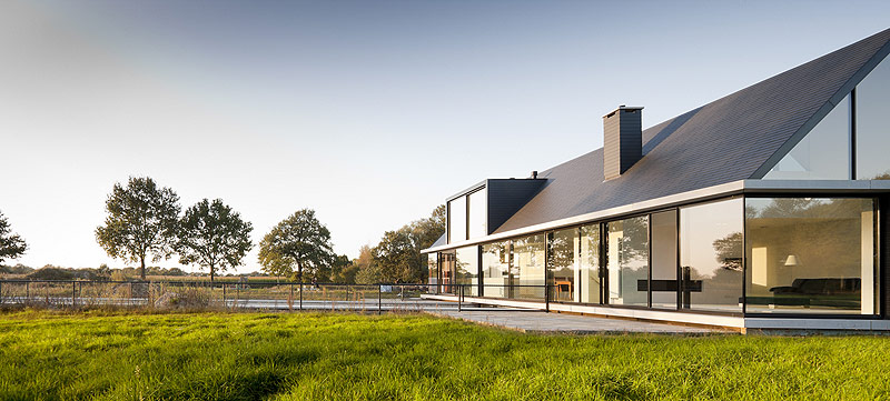 Villa Geldrop es una casa de interiores y exteriores minimalistas, situada en la campiña holandesa y proyectada por el estudio HofmanDujardin Architects para un hombre de negocios y su familia. Sin embargo, lo que a primera vista parece una casa común con amplias superficies acristaladas y un techo a dos aguas, resulta ser una compleja composición de espacio y luz, así como un análisis funcional del hogar moderno.