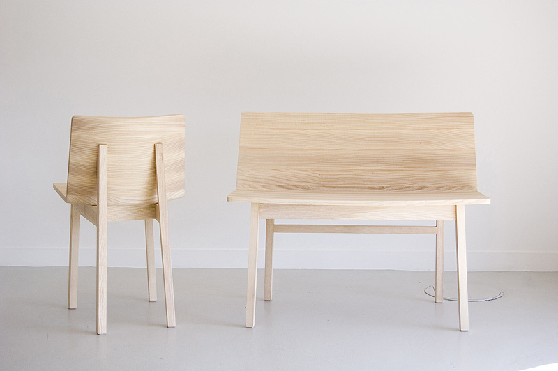 Sillas y banco con estética zen, realizados en roble (en claro y oscuro), aunque también se puede combinar las patas de madera con el asiento y el respaldo revestidos en una cálida tela de la firma Kvadrat. Existen varios tonos a elegir de tapizado. Medidas silla: 42 x 50 x 74 h cm. Medidas banco: 90 x 50 x 74 h cm.