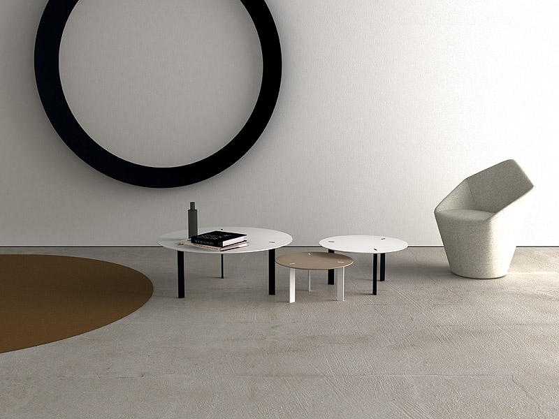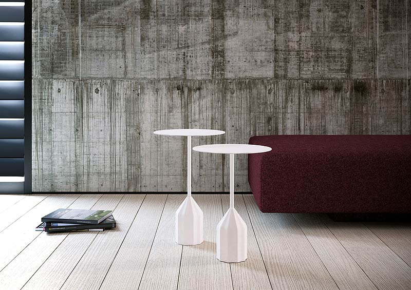 La arquitecta asturiana ha vuelto a colaborar con Viccarbe para la realización de este set de mesas auxiliares -disponibles en dos alturas- con un claro concepto escultórico gracias al elegante contraste entre la marcada personalidad del pie y la ligereza del sobre. También de Urquiola, pueden verse las mesas Tiers, presentadas en la última Feria del Mueble de Valencia, y una nueva versión del icónico taburete Last Minute, en esta ocasión con el asiento tapizado.
