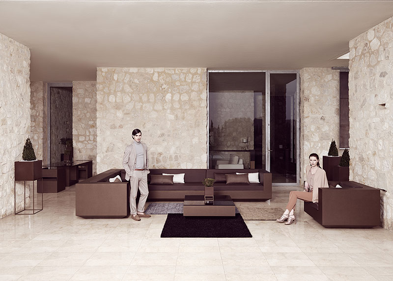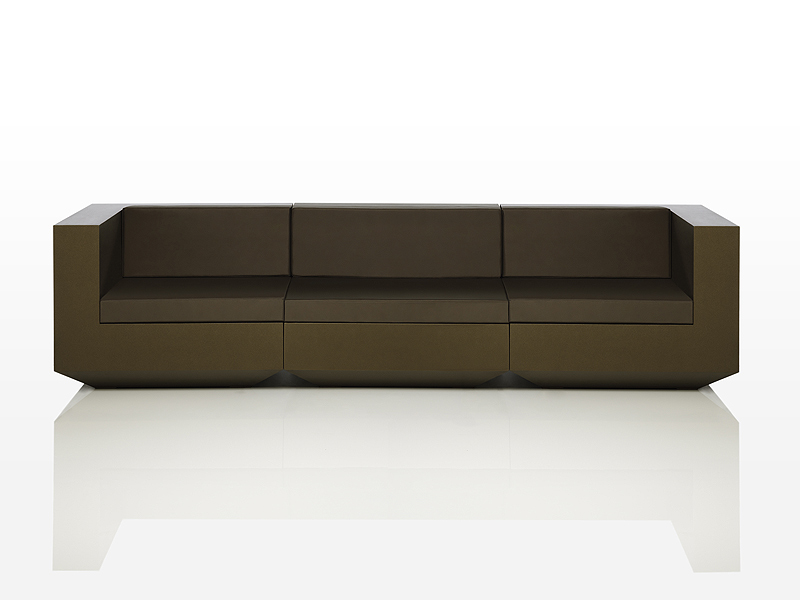 A nivel estético, Vela se distingue por su geometría elemental prismática que basa su singularidad en el equilibrio de sus proporciones. Sus volúmenes rotundos parecen flotar a unos centímetros del suelo y cuando se iluminan se transforman en arquitecturas livianas. A nivel funcional, los diferentes elementos se pueden combinar entre sí para poder convivir en cualquier espacio ya que su diseño permite que se utilicen tanto al aire libre como en el interior.