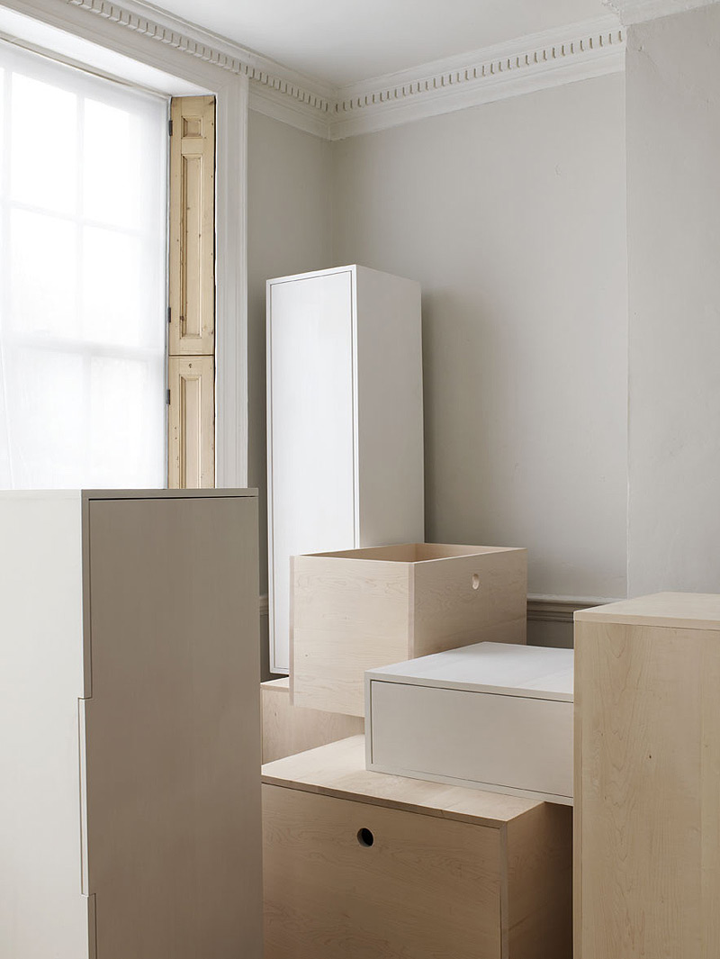 Estas unidades de almacenamiento, influenciadas por el siempre agradable estilo nórdico, se basan en la idea de una caja arquetipo que se va desarrollando y transformando, dando lugar a elementos de diferentes formas y medidas. Una idea que, aunque no es nueva, mantiene aquí el aire fresco de un mobiliario alejado todavía de un circuito comercial, que cumple objetivos estéticos y funcionales.