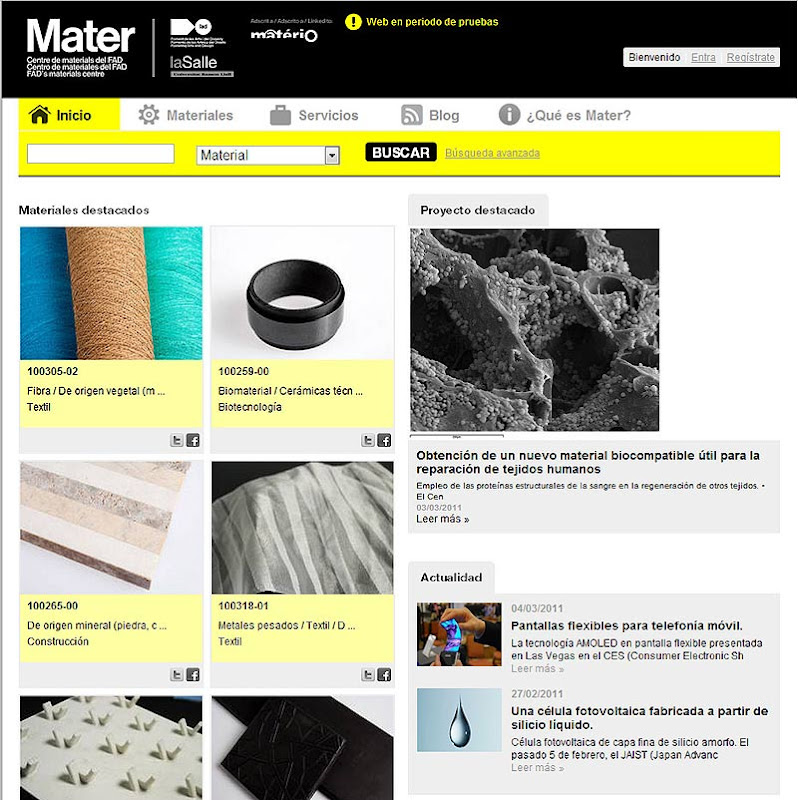 Mater, el Centro de Materiales del FAD, presentó recientemente su nuevo portal http://www.materfad.com/, un interesante lugar de encuentro para todos los apasionados de los nuevos materiales. Se trata de una plataforma de consulta online que se propone liderar una red que ponga en diálogo a profesionales, empresas y técnicos. Leer más…