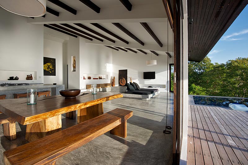El diseño de Casas del Sol se inspira en el clima tropical de Tailandia, de ahí que se han concebido como espacios abiertos, con terrazas, piscina, zonas lounge… para disfrutar ya no sólo del interior sino de las magníficas vistas al mar abierto y a la isla que tienen cada una de ellas. También la cultura mediterránea descansa en este idílico rincón con el eco directo de las casas modernas de las Islas Baleares reflejado en sus paredes blancas y en el predominio del hormigón pulido.