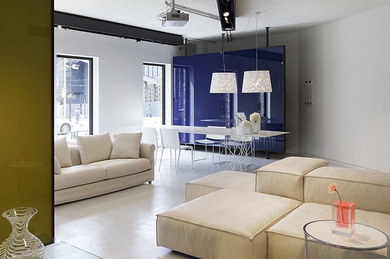 El showroom tiene 4 plantas de 540 m2 y en su interior se ha prestado una especial atención a las propuestas de las firmas Porro y Living Divani, y a las icónicas creaciones de Piero Lissoni. El arquitecto y diseñador también se ha encargado de la supervisión de la renovación del local y del proyecto de amueblamiento.