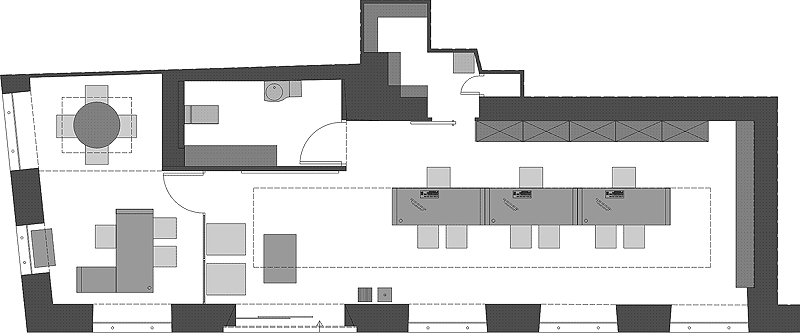 Para confeccionar la receta que condujera al éxito, se ha recurrido a dos «ingredientes» básicos: la madera de arce y el color rojo identificativo de Transvía Tours. El tono claro de la madera ha proporcionado a los espacios una indiscutible calidez mientras el intenso toque de color, que se ha aplicado a diferentes paramentos verticales (pintura y aplacado de cristal) y se ha elegido para algunas de las sillas y lámparas, aporta un toque de dinamismo a un entorno de carácter neutro.