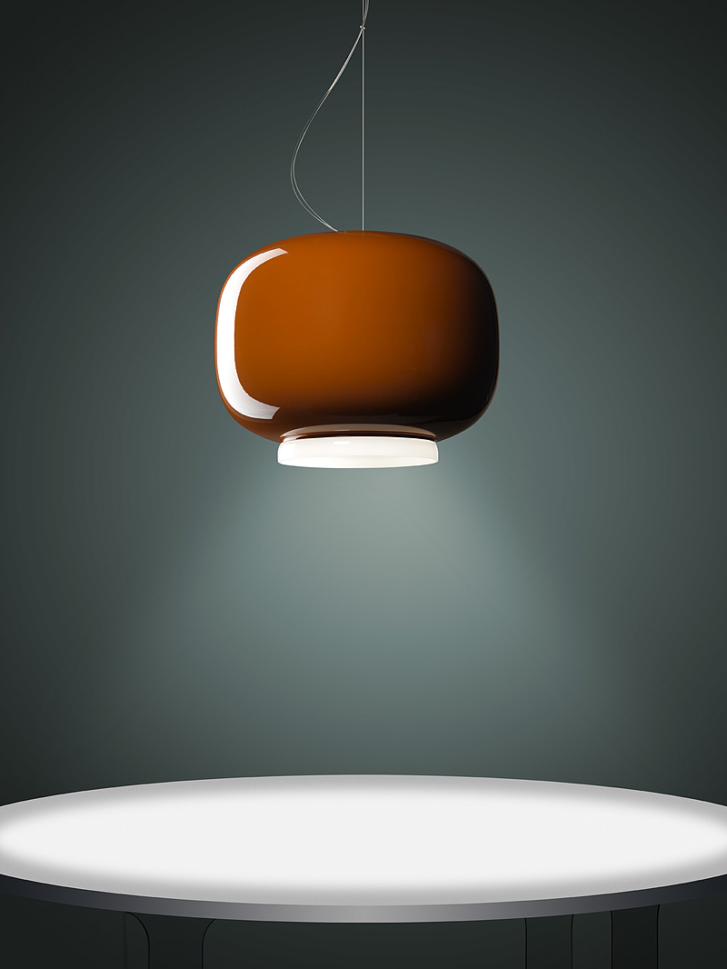 Color: naranja. Chouchin 2: 22 cm Ø, máx. 200 cm h. Color: verde. Chouchin 3: 30 cm Ø, máx. 200 cm h. Color: gris. Bombillas: halógena (1 x 150W) o fluorescente (1 x 23W).